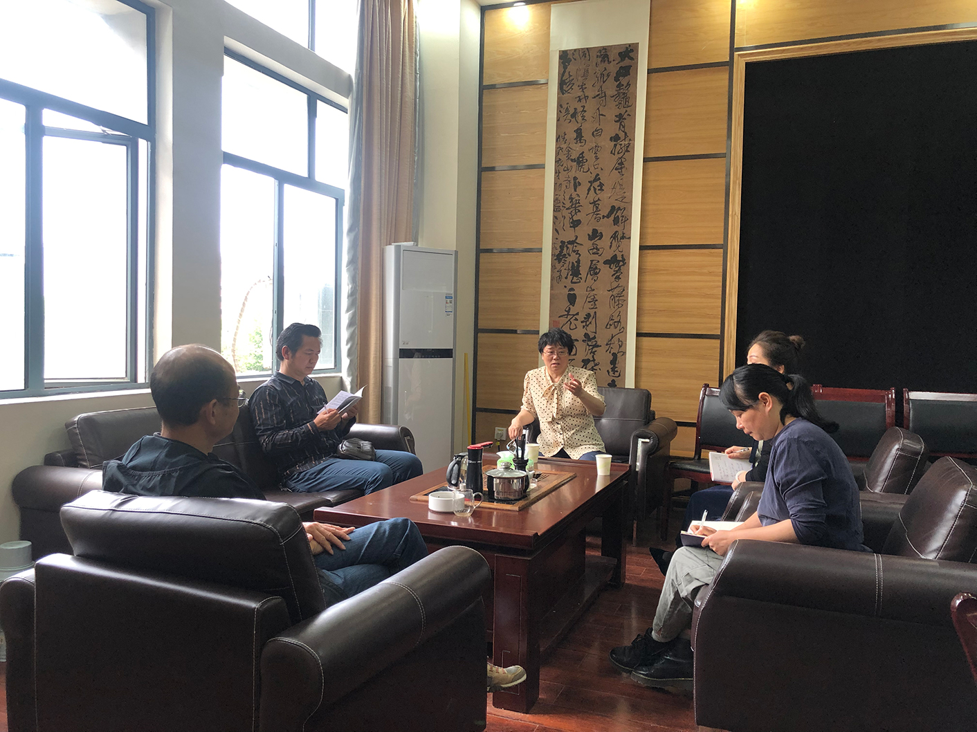 5月22日上午,伟德bv1946官网纪委李昱书记、纪委办袁向荣主任到伟德bv1946官网调研指导。李书记一行首先走访了解伟德bv1946官网开学以来各项工作安排、执行情况,尤其是疫情防控的落实、迎接学生返校准备工作进展情况。详细询问伟德bv1946官网是否有家在疫情高风险区的毕业班学生?相关的预案是否做好?然后到书法研究中心查看伟德bv1946官网2019年教学考核材料、本科教学审核评估材料,充分肯定美设院教学及各项工作取得的成绩。在与美设院党政领导班子座谈时,李书记强调,要继续通过团结协作发挥班子的凝聚力、战斗力,严格按照程序进行决策并做好相关记录;要继续加强党风廉政建设;打好“三大攻坚战”,需要科研方面也打开新局面。