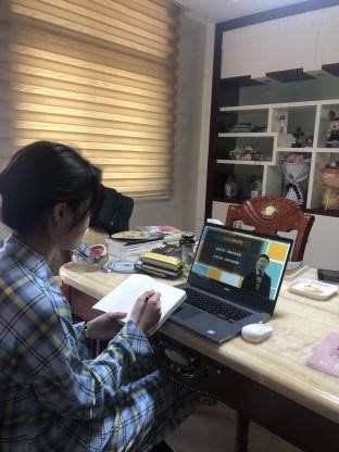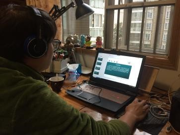 学生利用家中设备进行网络学习