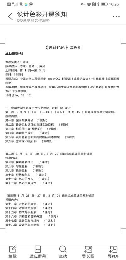 自2月15日,我院确定线上教学实施的思路为“以课程组为单位,教学方式灵活多样,平台选择以简单易操作,保障教学为主”之后,教研室开展了微信讨论、QQ群分享教学资源以及腾讯视频会议等多次研讨,商议了多种授课方式,涵盖运用慕课、智慧树等平台进行理论教学,借助QQ直播和斗鱼直播进行实践示范,利用微信进行实时授课反馈等。教研室同仁不但同心协力保证理论教学效果,在此基础上带领学生熟悉授课关键环节和技术,而且力争直播和在线互动解决技能课的示范问题。同时开展了教学方式的改革探索,在课题组内教师授课形式相互补充的前提下,进一步拓宽了教学思路,引申出对教学方式改革的探讨,初步商定了特定时期的教学走向。面对教学准备时间短、技术条件不成熟等众多困难,教研室决定在保证教学要求的同时将开学时段的基础课程作实践要求的调整,例如设计色彩课程由陈理老师作为课程负责人牵头,调整之前单纯训练水粉技法的教学内容,提议将重点放在色彩感受的培养上,不局限于技法工具,鼓励学生利用手边可以找到的彩铅、马克笔、水彩等多种条件分析色彩原理,试验色彩搭配,以期重点培养学生自我思考、创新、反思和探索知识的能力。这一想法开拓了教研室老师的思路,深入讨论了具体实施的难点和问题。
