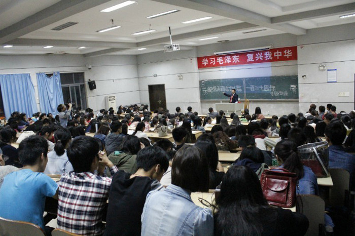 组织观看《毛泽东遗物的故事》,是我系纪念伟人毛泽东诞辰120周年、求学一师100周年的系列活动之一。本学期我系围绕毛泽东诞辰120周年还举办了一系列纪念活动。9月9日,在新生入学教育中,系党总支副书记舒克斌为新生作了《伟人毛泽东求学成才之路》的讲座,帮助学生认识到:成就一代伟人不是偶然的,这是毛泽东自身的艰辛努力和一师范诸多良师的指引培养、益友的相互砥砺的结果。10月16日,系部特邀黑龙江鸡西矿业集团党委宣传部部长、宣传毛泽东思想20余年的毛泽东研究专家陈烈先生作了《学习毛泽东,复兴我中华》的演讲,希望同学们要学习毛泽东的伟大思想和人格,从而实现复兴我中华的伟大梦想。10月24日,在学校第九届青年学习节中,我系以“浓墨重彩一师情”为主题,现场用浓墨重彩,绘一师的景,书主席的诗,表达对母校的热爱、对伟人的崇敬。目前,我系正在认真筹办“纪念伟人毛泽东诞辰120周年、求学一师100周年、一师建校110周年”师生美术作品展,拟展出200多件作品,涵盖绘画、设计、书法、剪纸等多艺术门类,这将给我校“三庆”又添一道美丽的风景。