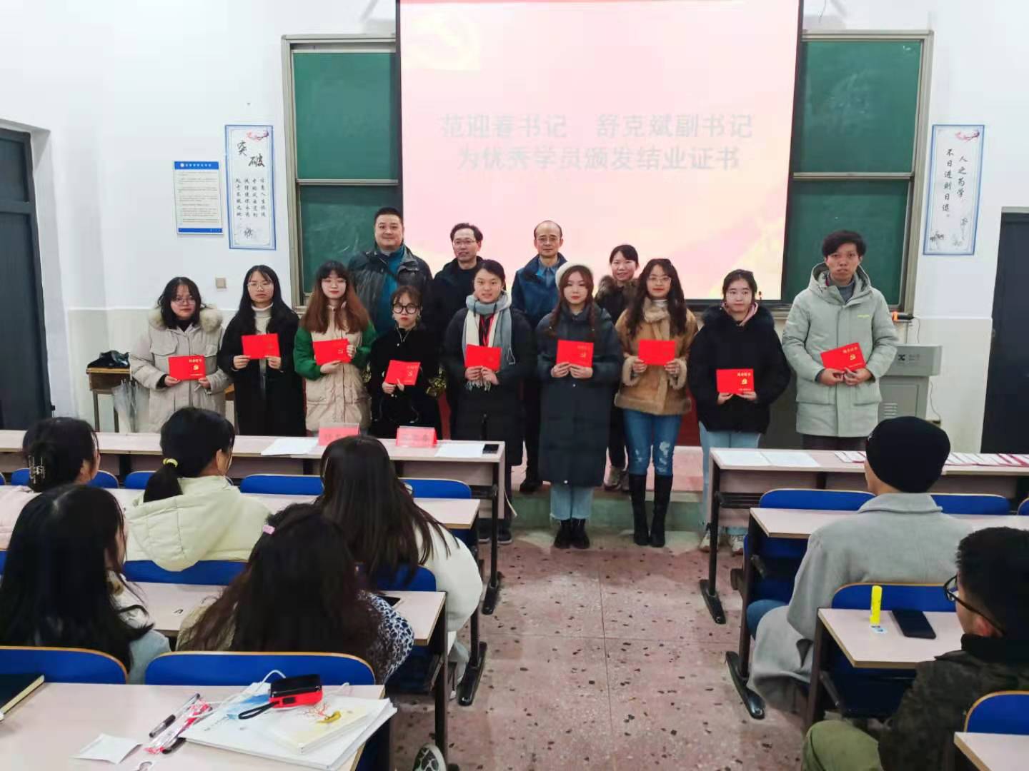 11月13日晚上7点,伟德bv1946官网分党校第25期、26期入党积极分子培训班结业典礼在鹤鸣楼南111教室举行。伟德bv1946官网党总支书记、分党校校长范迎春教授,党总支副书记、分党校副校长舒克斌副教授,学生党支部委员以及第25期、26期共计100名入党积极分子出席了结业典礼。舒克斌副书记进行了培训总结。范迎春书记宣读了表彰入党积极分子优秀学员的决定。两位书记一起为优秀学员颁发证书。入党积极分子们纷纷表示会牢记书记们的嘱托,继续在各方面严格要求自己,深入学习党的理论知识,坚定理想信念,增强党性修养,勤奋学习,不断提高自身的综合素质,以实际行动争取早日入党。