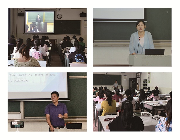 我院院长张娴、党委副书记(主持工作)杨虎智、副院长蔡惠萌、党委副书记戴建宇,各系主任、新生班班导师,学工办主任武湘梅,教科办主任谷布,分团委书记、新生班辅导员张莎莎,班导生、朋辈辅导员以及“鹤鸣”宣讲团成员纷纷登场,为新生奉上丰富的入学教育“精神大餐”。