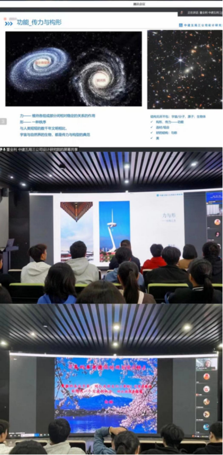开幕仪式后首先由董全利博士以“力与形——结构之美”为题进行主会场学术报告。他通过图文结合的方法分别从结构-构建美好、结构受力与建筑的形式美延伸到艺术作品中的力学,介绍了结构形式的美学方面的认识。旨在让结构技术与艺术美学互彰互利,使结构设计和设计美学达到真正的相辅相成。