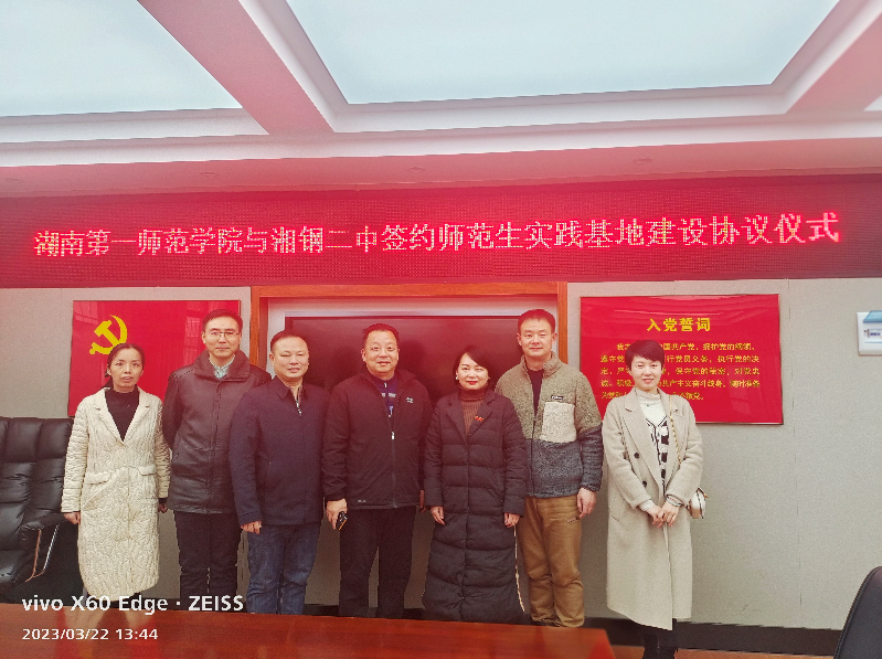 3月22日,伟德bv1946官网与湘潭市岳塘区湘钢二中共建实习基地签约仪式在湘潭市岳塘区湘钢二中会议室举行。参与此次签约仪式活动的有:伟德bv1946官网教务处副处长汤希玮、伟德bv1946官网副院长蔡惠萌(主持行政工作)以及湘钢二中的校领导及相关干部们。