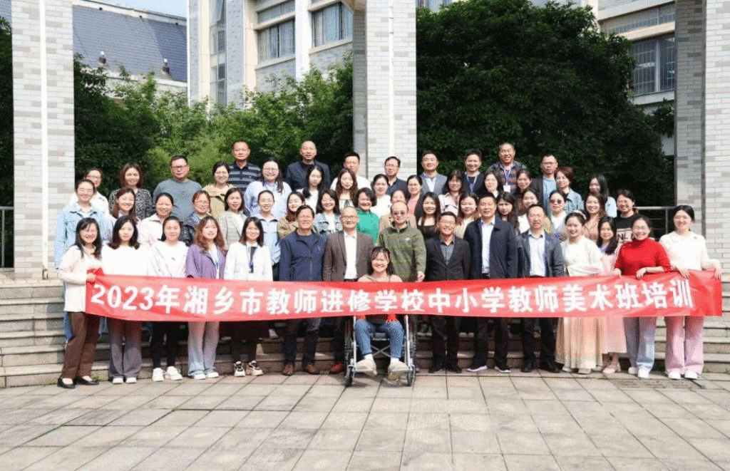 2023年5月12日上午,湘乡市中小学美术教师提升研修班在我校润寰楼南栋102室开班。来自湘乡市中小学的50名学员参加了本次培训。湘乡市教育局人事股副股长陈钱,市教师进修学校党委书记兼校长陈永忠、党委委员陈望明、伟德bv1946官网伟德bv1946官网党委书记杨虎智、副院长(主持行政工作)蔡惠萌、现代教育发展学院副院长李辉华、首席专家范迎春教授和项目管理团队老师出席了本次开班典礼。