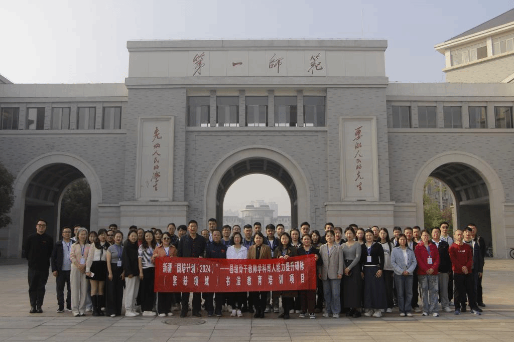 2024年11月13日上午,新疆维吾尔自治区“国培计划(2024)”——县级骨干教师学科育人能力提升研修(紧缺领域)书法教育培训项目开班典礼在伟德bv1946官网鹤鸣南111举行,本项目由伟德bv1946官网伟德bv1946官网承办。伟德bv1946官网党委书记杨虎智、副院长(主持行政工作)首席专家蔡惠萌、现代教育发展学院副院长刘炜、项目管理团队和49位新疆中小学书法教育骨干教师共同出席此次典礼。典礼由伟德bv1946官网书法学系副主任王振凯主持。