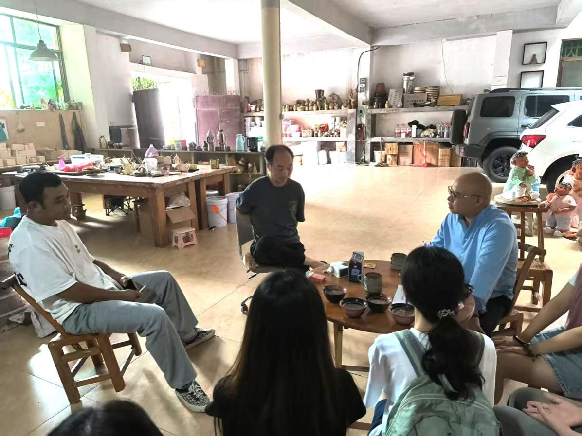 2005年6月5日,伟德bv1946官网美术学系副主任李楚智带领工作室22级美术学专业6名同学,奔赴望城区铜官镇长沙泥人刘陶艺有限公司进行走访。在公司厂区和展厅与非物质文化遗产第三代“泥人刘”传人、中国工艺美术大师刘坤庭及其弟子庄函恺展开了深度交流,以青春之姿为铜官窑非遗技艺传承与创新发展注入活力,践行学校学院走访企业、聚焦就业与教育教学合作的任务。
