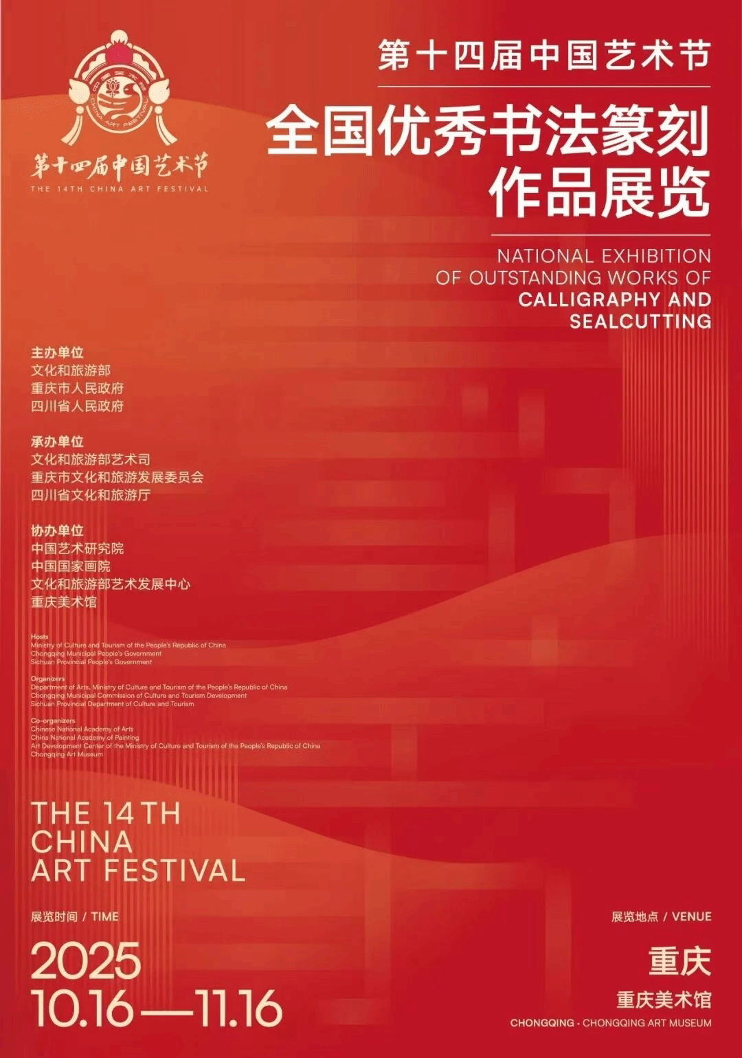 10月16日,由文化和旅游部、重庆市人民政府、四川省人民政府等单位联合举办的第十四届中国艺术节全国优秀美术、书法篆刻、摄影作品展览开幕式在四川美术学院举行。我院书法学系钟全昌、冯高两位教师作品入选本次展览。充分体现了我院教师创作能力与艺术水平。