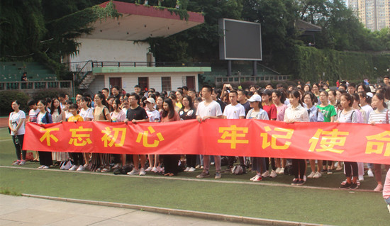 入党宣誓活动在雄壮的《国际歌》声中拉开帷幕。全体预备党员列队肃立,面对党旗,面对青年毛泽东铜像,举右手齐肩握拳,跟随领誓人宣誓,“我志愿加入中国共产党,拥护党的纲领,遵守党的章程,履行党员义务……”整齐划一、浑厚嘹亮的誓言在广场上响起。全体预备党员充分感受到了入党的严肃性和庄重性,坚定了为共产主义奋斗终身的信念和决心。宣誓结束后,预备党员纷纷表示,作为学生党员,一定做到在政治上思想上行动上与党中央保持高度一致,初心不忘、激情不褪、学习不滞、勤奋不减,肩负起国家富强、民族振兴和人民幸福的历史重任,在各个方面起好先锋模范作用。
