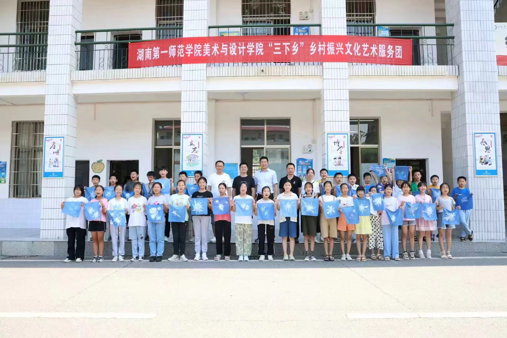 7月11日上午,伟德bv1946官网党委书记杨虎智、副书记刘峰来到浏阳永和镇中心完小看望在此开展暑期“三下乡”乡村振兴文化艺术服务团的全体师生志愿者。此次我院奔赴浏阳永和镇的实践团由武湘梅和谷帜辉两位老师带队。从7月5日至今,该实践团已开展6天美育夏令营,共招收大中小三个段次的小朋友共140余人。杨虎智一行到达小学后,先参观了正在上课的班级,查看了志愿者组织有序的课堂,对师生志愿者前段时间完成的教学成果表示肯定。随后,在永和镇中心完小沈校长的陪同下,前往红一方面军成立旧址李家大屋参观学习。学习结束后,回校组织师生志愿者开展座谈会。座谈会由刘峰副书记主持,杨虎智书记对前段时间实践团的成果进行了肯定和表扬,对同学们提出了更高的要求:一是希望师生牢记自己是一师人,时刻注意自身的形象与气质;二是注重知识与才华积累。要给学生一碗水,自己要有一桶水,不断在实践中锤炼课堂教学技艺,让家长们放心;三是遵守制度和纪律。处处做学生们的表率,展现我校优良的作风。参与座谈的学生纷纷谈及自己的收获,表示此次实践给自己的学习和各方面能力的提升带来了挑战,必将牢记一师人的责任,以更高标准完成下一阶段的任务。此次活动,永和镇中心完小的沈校长全程陪同,并对我校师生志愿者的付出表示了感谢和高度赞扬。会后,双方表示,未来还将就红色文化融入美术课堂为主题的校本课程研发达成更深度的合作。
