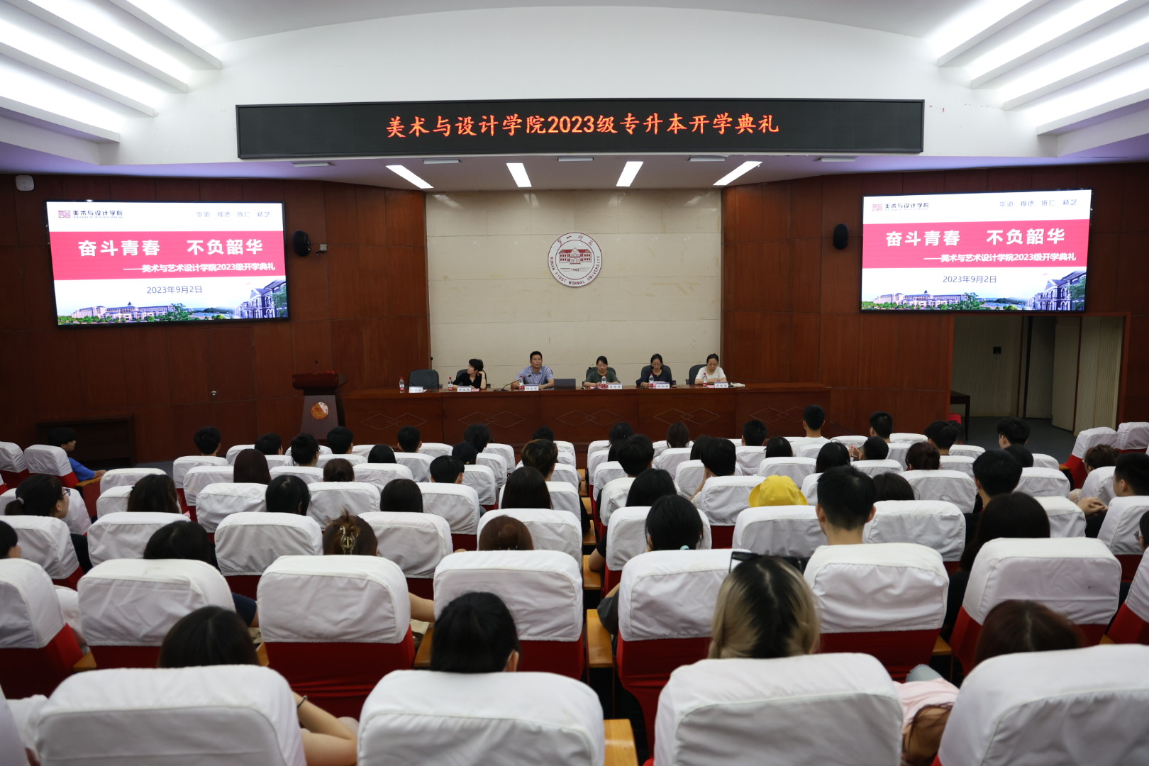 此次活动由两个部分组成,第一部分为开学典礼,第二部分为入学教育。典礼伊始,蔡惠萌副院长简要介绍了一师范的校史校情,并对新生提出了四点希望:一要大学之道,在明明德;二要学会感恩,心存善意;三要立大志,成大才,担大任;四要知行合一,格物致知,学以致用,在实践中成长、成才、成功。