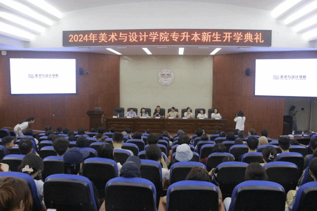 老生代表21环境设计2班向波和新生代表22视传3班刘威同学分别进行发言。