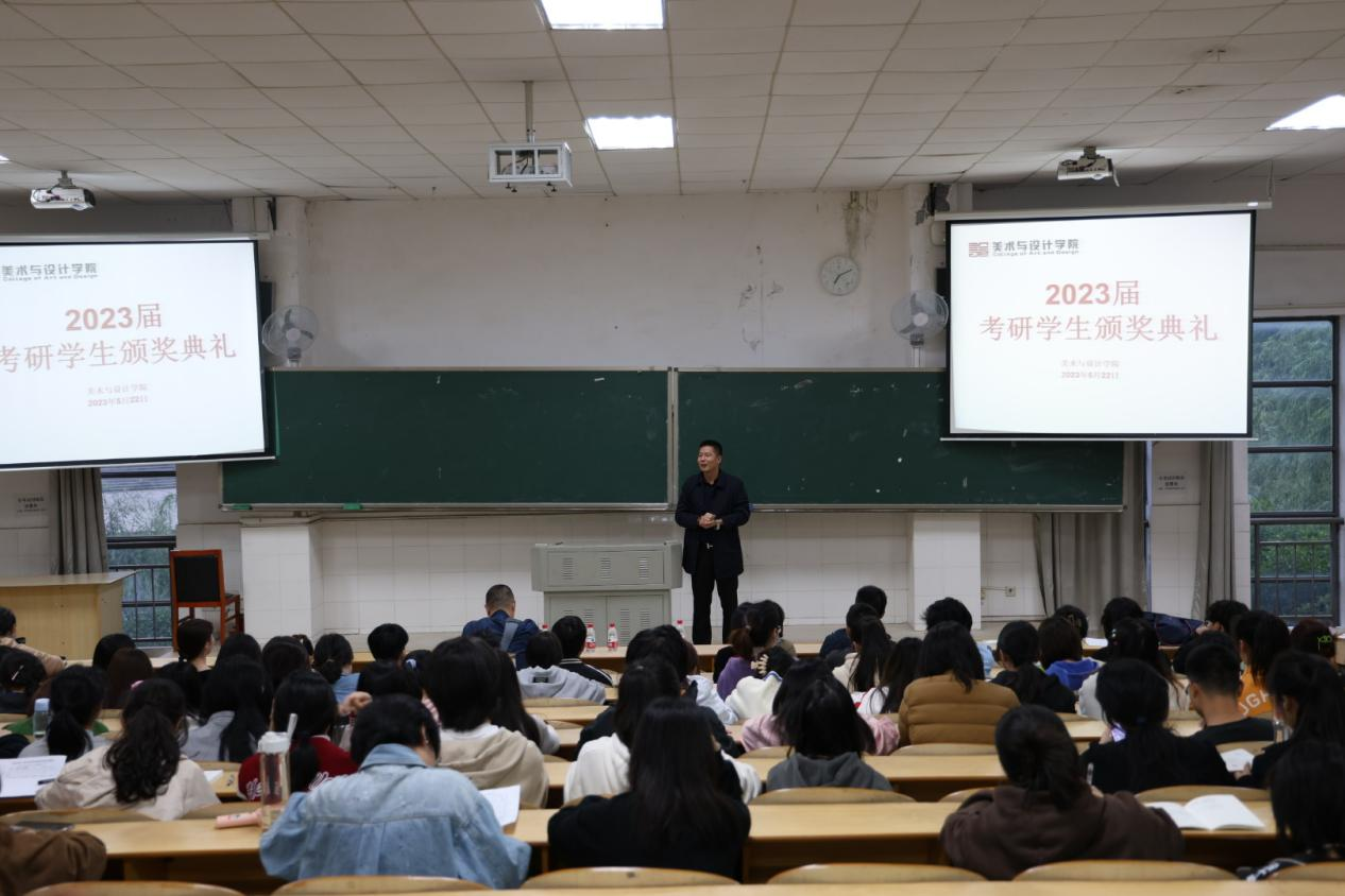 5月22日晚7点,伟德bv1946官网在玉衡南201举行2023届考研学生颁奖典礼暨考研经验分享会。学院党委书记杨虎智、副院长(主持工作)蔡惠萌、党委副书记刘峰、学工办全体老师和近200名美院学生参加本次活动,由院学工办主任武湘梅主持。