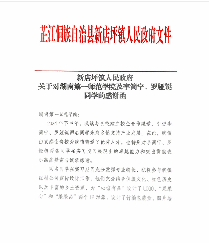 新店坪镇人民政府关于对伟德bv1946官网及李简宁、罗娅铤同学的感谢函