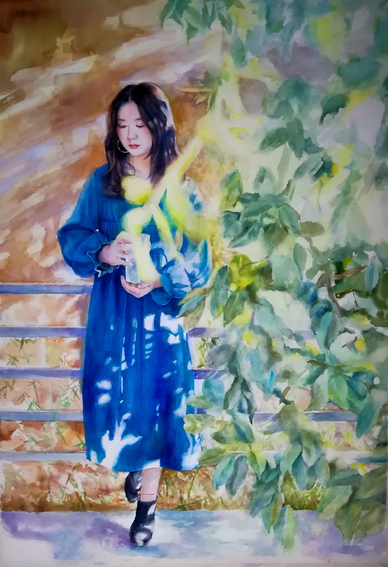 杨雁楸 水彩画 金色阳光79×110cm 2020