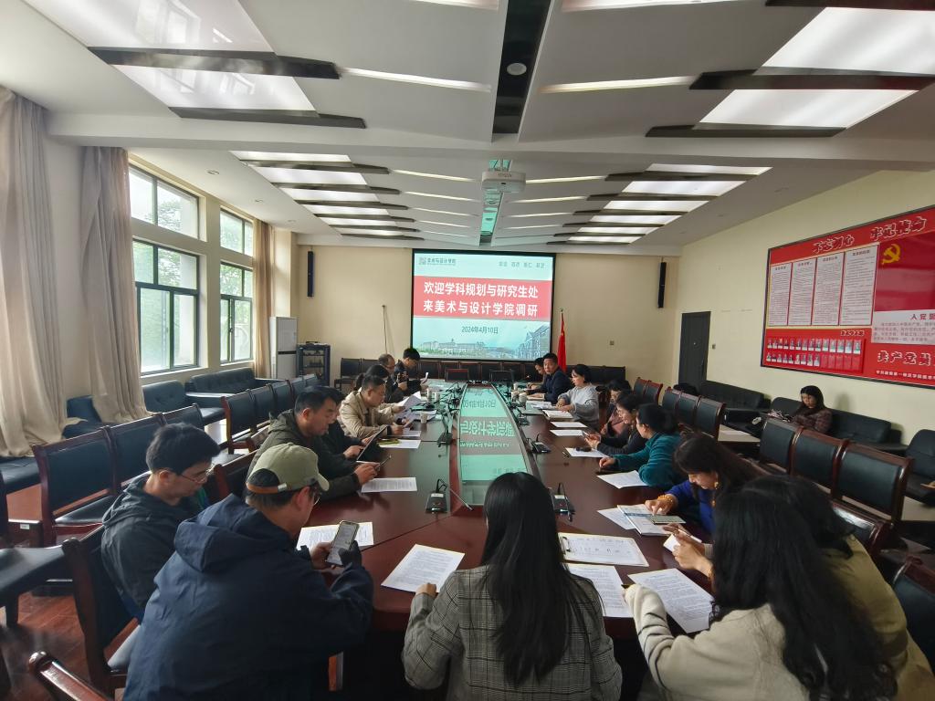 2024年4月10日下午2:30,学科规划与研究生处欧阳章东处长一行来伟德bv1946官网调研学位点申报工作,调研会议在鹤鸣南203会议室举行,伟德bv1946官网党委书记杨虎智主持会议,美设院班子成员、骨干教师、青年教师代表参会。