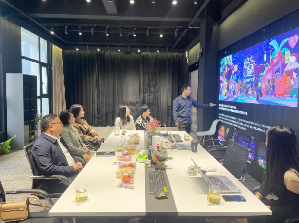 调研座谈会上,刘礼毓介绍了湖南花火剧团的基本情况及今后发展思路。他表示,打造烟花特色的文化IP,实现“烟花+艺术+文旅”的跨界融合是我们的发展方向,与时代一同进步、讲求创新,才能让浏阳烟花源远流长。他提出了与我校“共制、共创、共享”的合作意向。赵奇钊对湖南花火剧团“文化传承+创意赋能”的融合创新探索给予了高度评价,希望双方加强项目开发、人才培育、专业建设、文化传承等方面的交流合作,通过文化与科技的创意赋能,全力推进烟花产业与创意设计、媒体艺术深度融合,共同擦亮享誉世界的文化名片。蔡惠萌表示湖南花火剧团用烟花和火种来讲故事,打造了湖南乃至中国独一无二的文化名片。她希望伟德bv1946官网的视觉传达专业、环境设计专业能和产业需求实现深度融合,提出双方可以共同开展横向科研项目、共同研发课程、共建实习实训基地等合作建议。随后,双方团队围绕产学研融合进行了深入探讨。