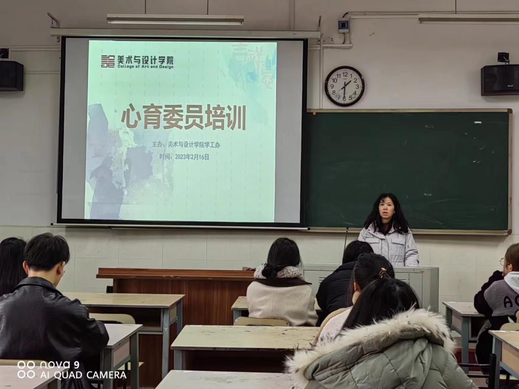 我院召开心育委员培训讲座 发布时间:2023-02-17 作者:武湘梅 浏览次数: 2月16日中午,我院学工办在鹤鸣南310召开了全院各班级心育委员的培训讲座。本次讲座由学工办主任武湘梅老师主讲。 讲座从心育委员的重要性、选拔标准、角色定位、工作职责、工作方法几个方面展开。重点对工作职责和工作方法进行讲解,帮助同学们分析如何分辨常见的心理异常现象?常见的工作方式有哪些?如何开展朋辈辅导?通过近1个小时的讲座,心育委员学习到了一些基本的心理健康常识,意识到针对心理危机干预要早发现、早上报、早干预的重要性。