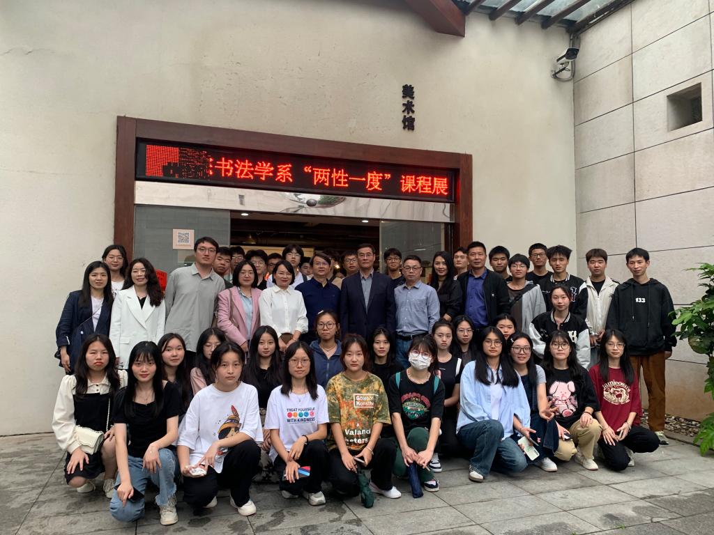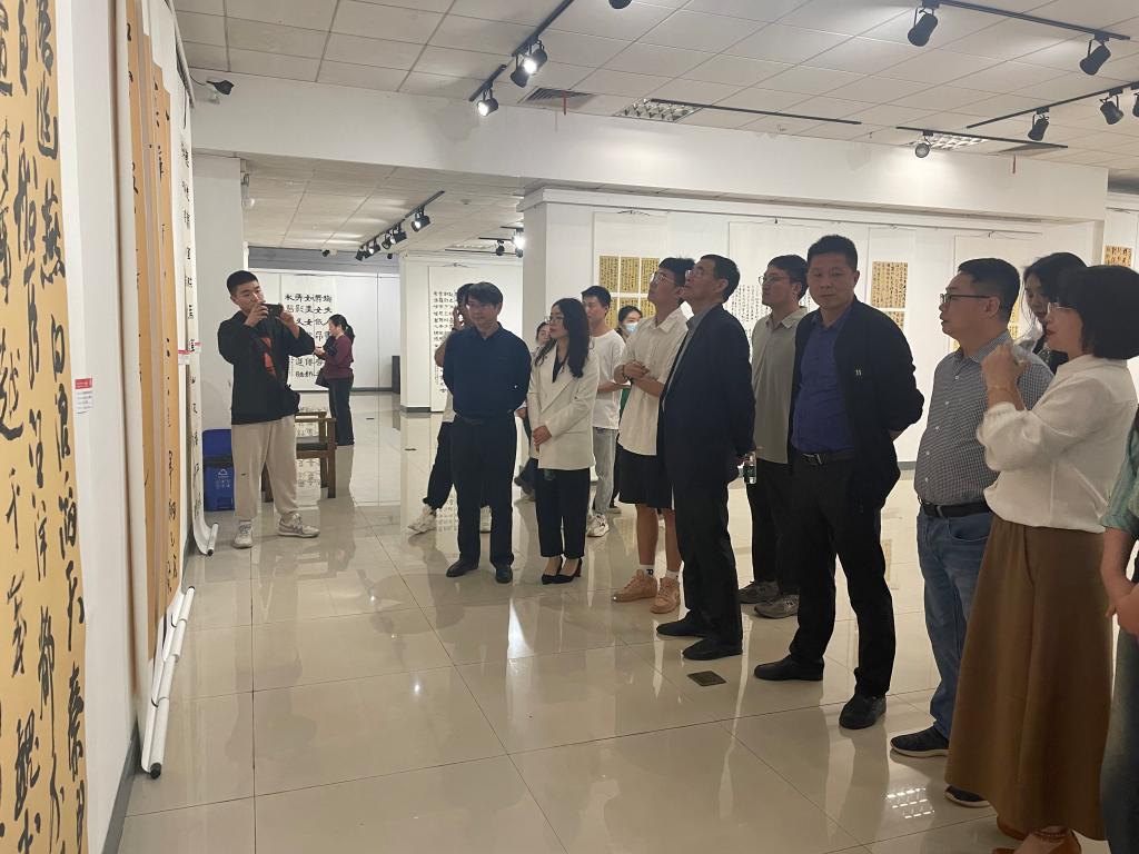 校党委委员、副校长江正云教授莅临本次展览,对伟德bv1946官网书法学系在思政育人与课程改革中的新举措给予充分肯定,提出书法教学要注重价值引领、技道并重,切实提升学生创作能力与研究水平,并对书法学系未来的专业发展与课程建设提出新期望。