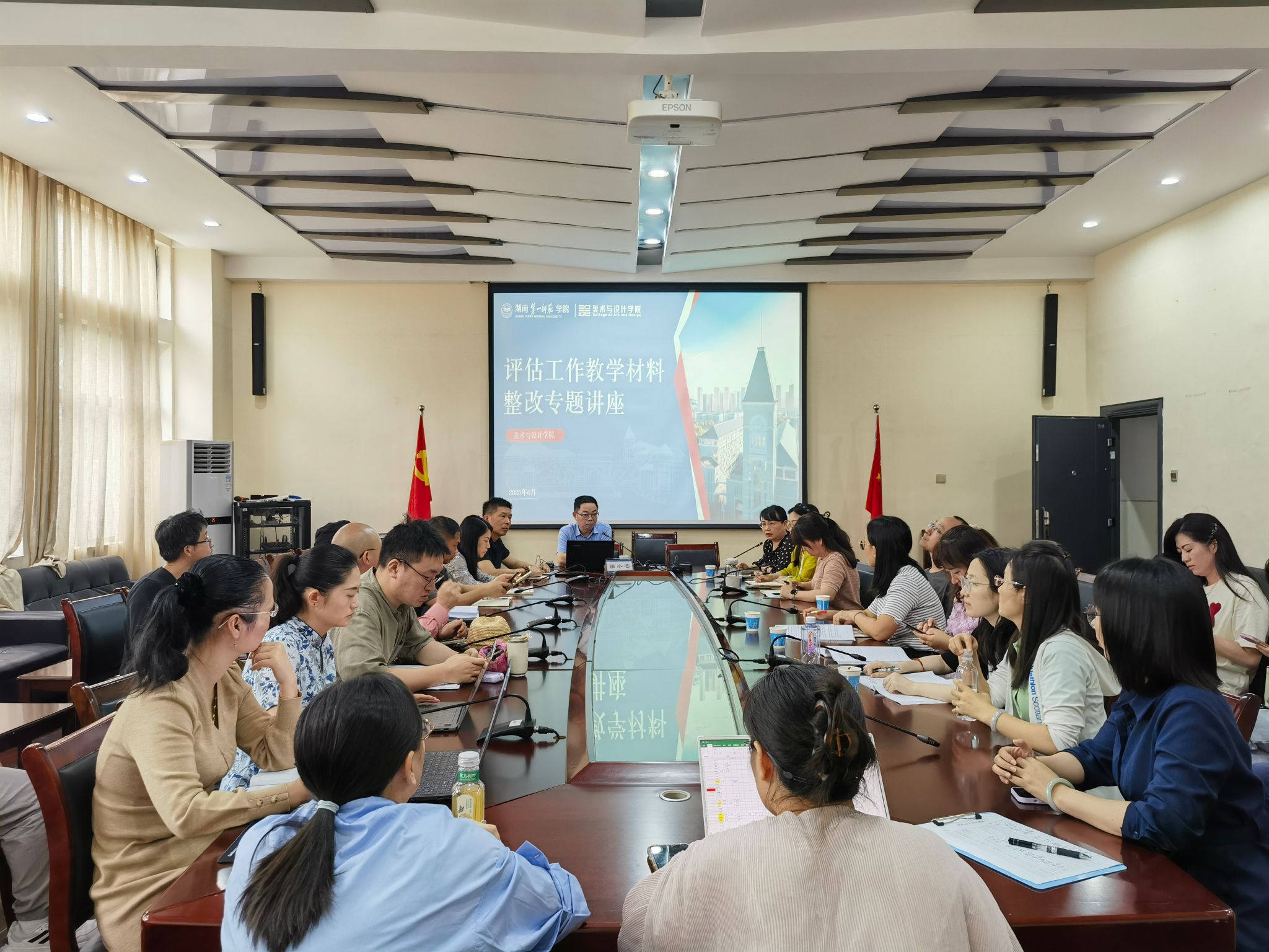 为扎实推进本科教育教学审核评估工作,提升迎评促建实效,2025年6月24日下午2:30,我院在鹤鸣楼南203会议室召开教学材料整改专题讲座,特邀学校教学质量监控与教师教学发展中心廖小芒主任作专题解读与精准指导。学院全体教师参加了本次会议。