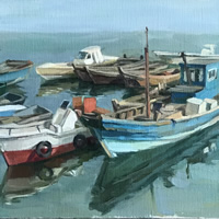 丁凯 油画 崂山泉岭渔...